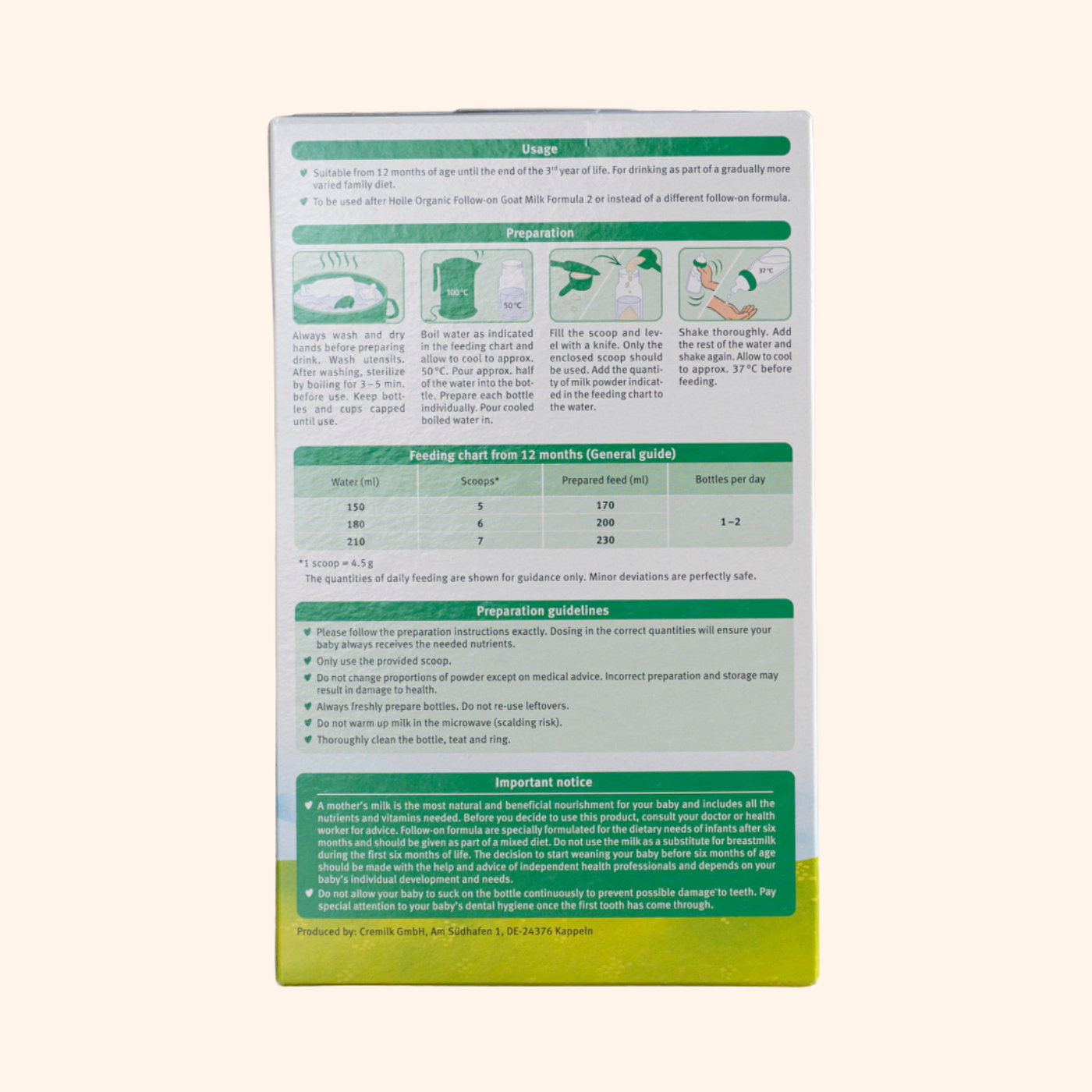 Since ingredient preferences differ globally, Holle has also adapted their goat milk recipes for different countries accordingly.